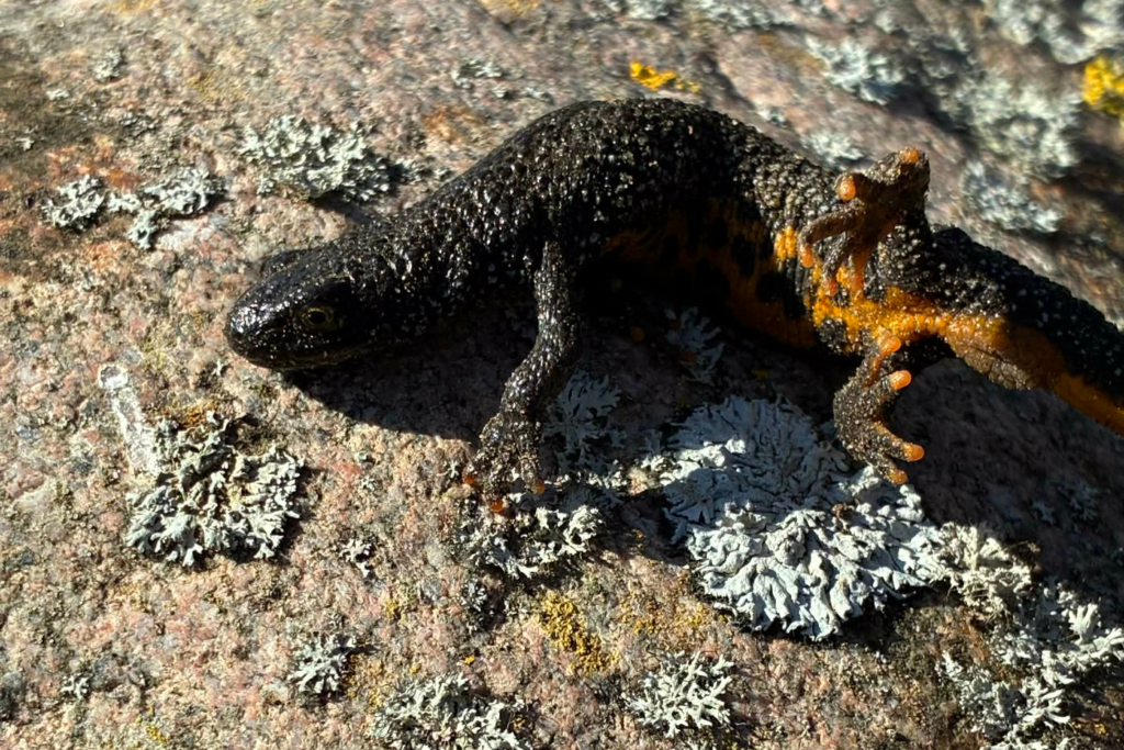 Sodyboje aptiktas tritonas iškart patraukė dėmesį išskirtine išvaizda: tamsia, grublėta oda ir ryškiai oranžiniu pilvu, numargintu juodomis dėmėmis. Įdomu tai, kad pilvo raštas yra unikalus kiekvienam gyvūnui – gamtoje nerasite dviejų vienodų individų, tad šios dėmės gamtininkams tarnauja tarsi asmens tapatybės kortelė.