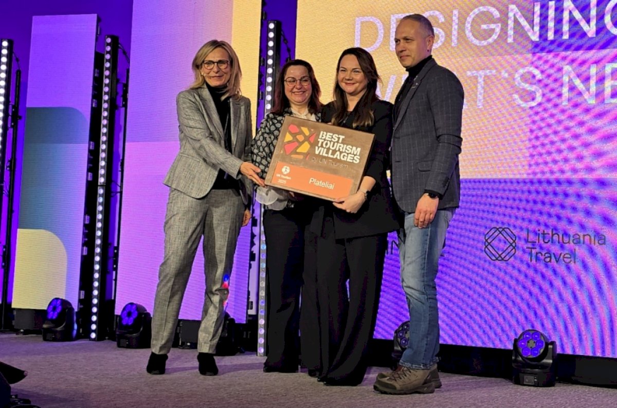 Pačioje forumo pradžioje organizacijos „UN Tourism“ Europos regiono direktorė Cordula Wohlmuther ir ekonomikos ir inovacijų viceministrė Guoda Burokienė į sceną pakvietė Plungės turizmo informacijos centro direktorę Sandrą Kasmauskienę – jai įteiktas 2025-ųjų rudenį Jungtinių Tautų Pasaulio turizmo organizacijos Plateliams skirtas pasaulinio masto apdovanojimas – „Geriausias turizmo kaimas 2025“.